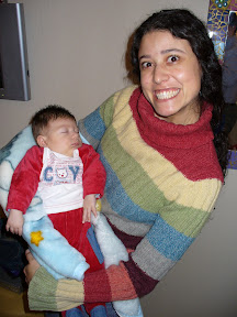 Después de la clínica fuimos a buscar la sillita para el auto que te "regaló" la clínica, así que ya tienes silla hasta los 4 años (quizás un poco menos). Luego fuimos a la casa de tu madrina (quien aparece en la foto contigo en los brazos), ya que nos invitó a almorzar ... ella también estuvo a la hora de vacunarte, y sufrió un poquito nuestra impotencia ...