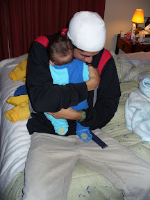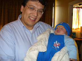 Compartió contigo toda la mañana, incluso durmieron juntos (pero no revueltos) ... si bien iba a ayudar a bañarte, el cansancio del viaje pudo más (si llegó a tocar nuestro timbre cerca de las 07:30 hrs.) ... daba gusto ver como te disfrutaba, hijito. Estábamos muy contentos de que llegara, tanto por él, que puede compartir con su familia, que lo ha esperado con mucho ahínco, como por ti, que ahora has podido conocer a tu tío Marco en persona ... el Elegido.